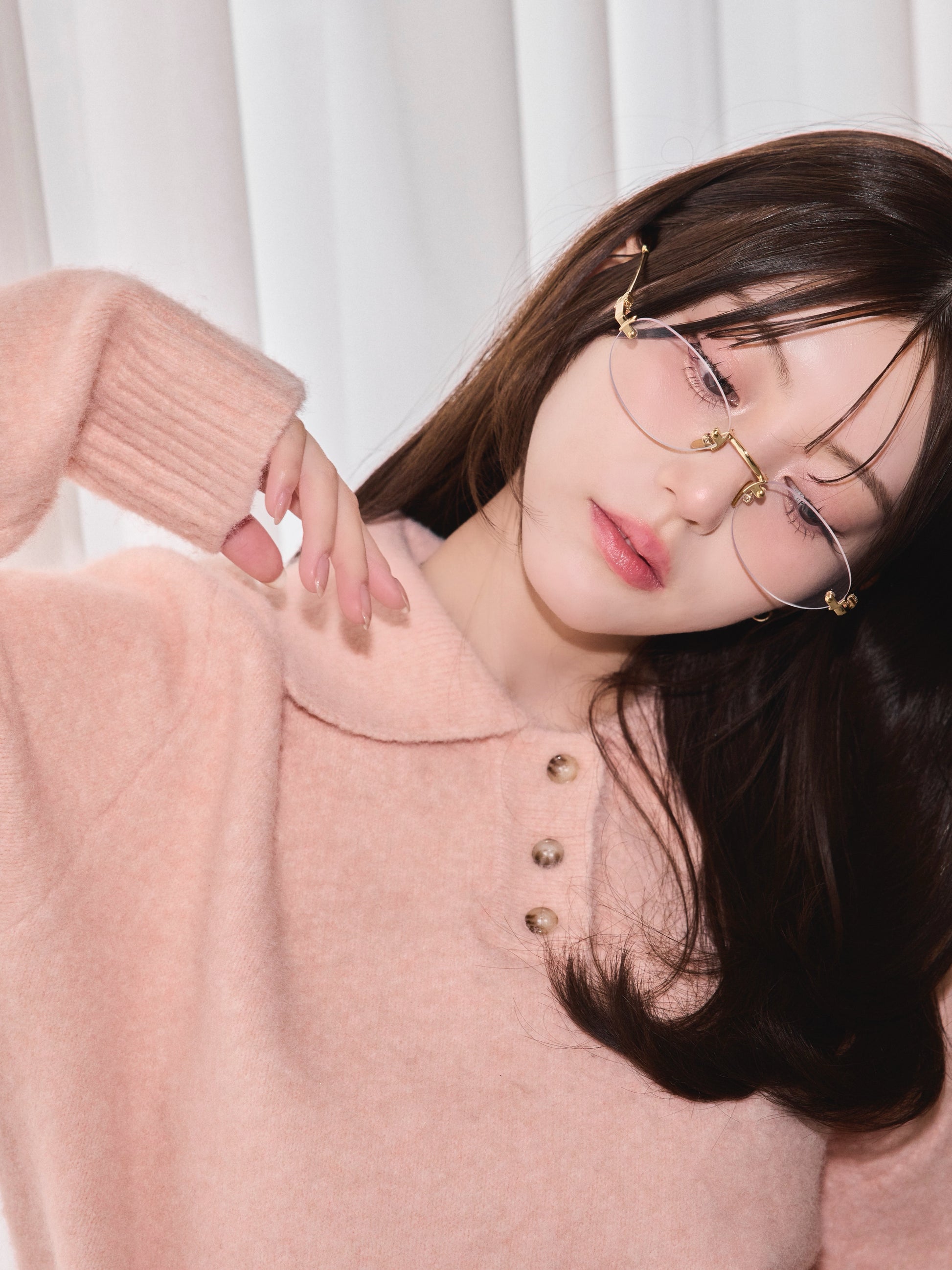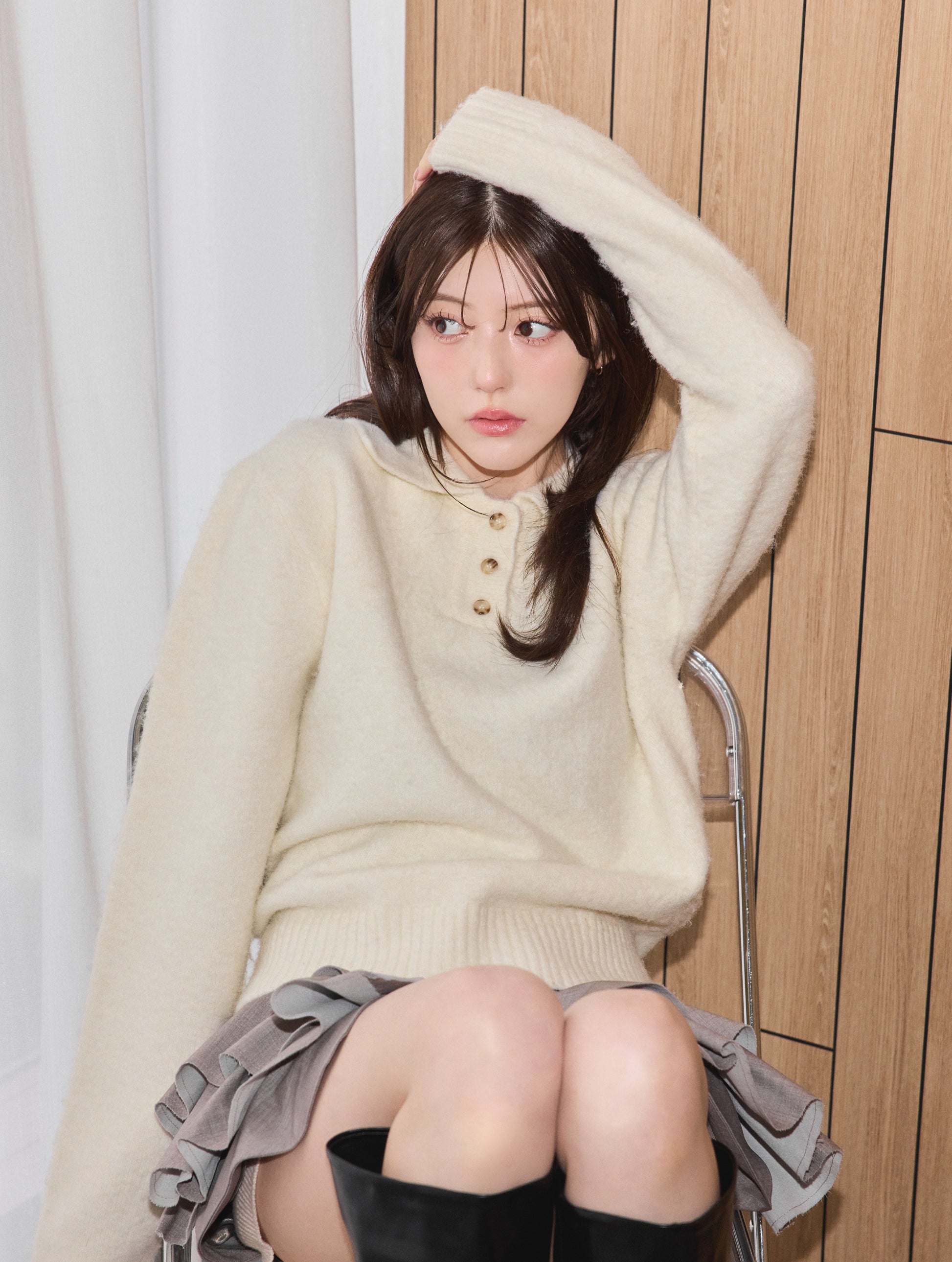 ほんのりと毛立ちを残した肉感のある編地は身体に寄り添いながら、襟が造形に秩序を与えます。