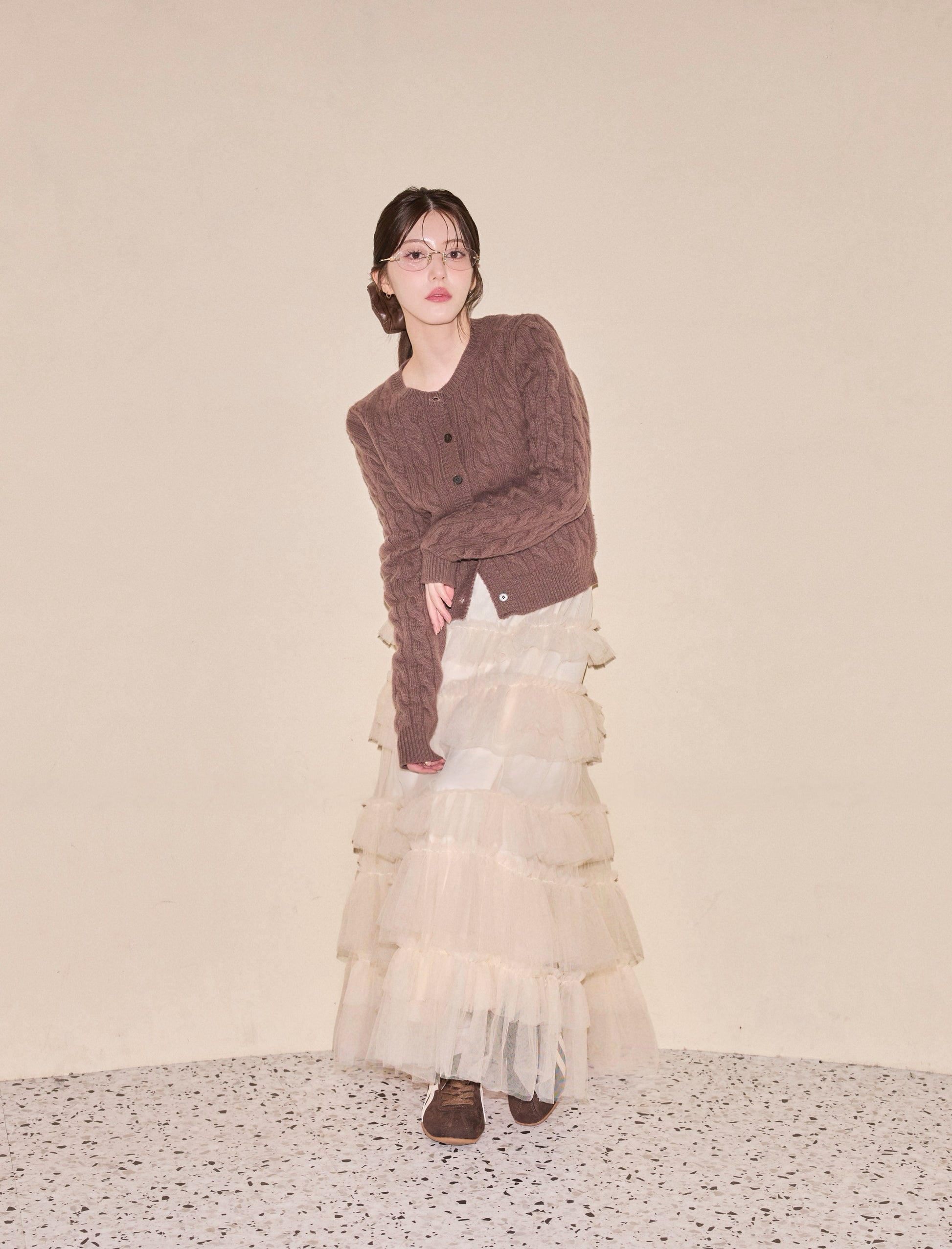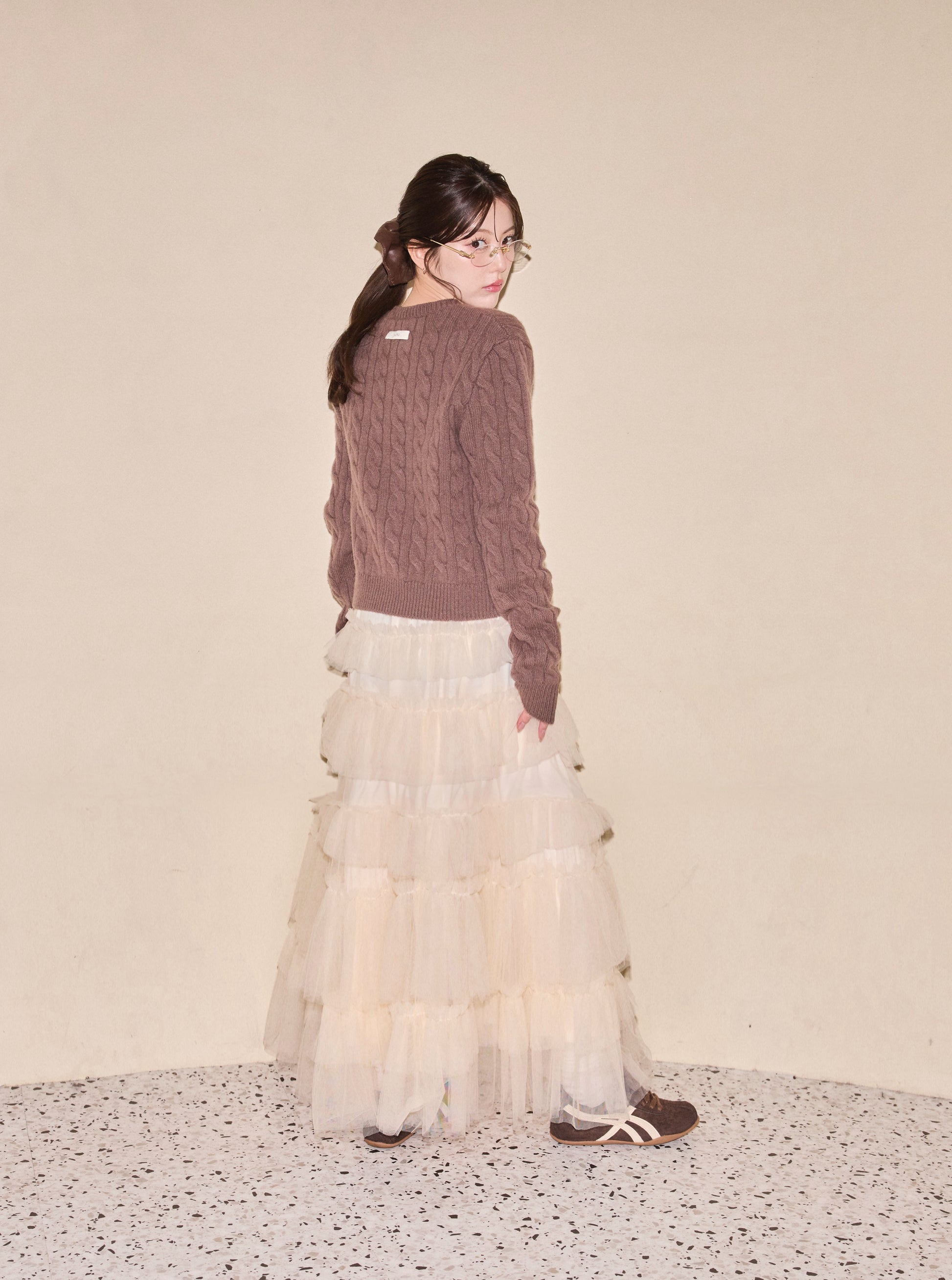 幾重にも重ねたチュールが空気をはらみ、穏やかに揺れるカーテンのような柔らかさをまとったスカート。